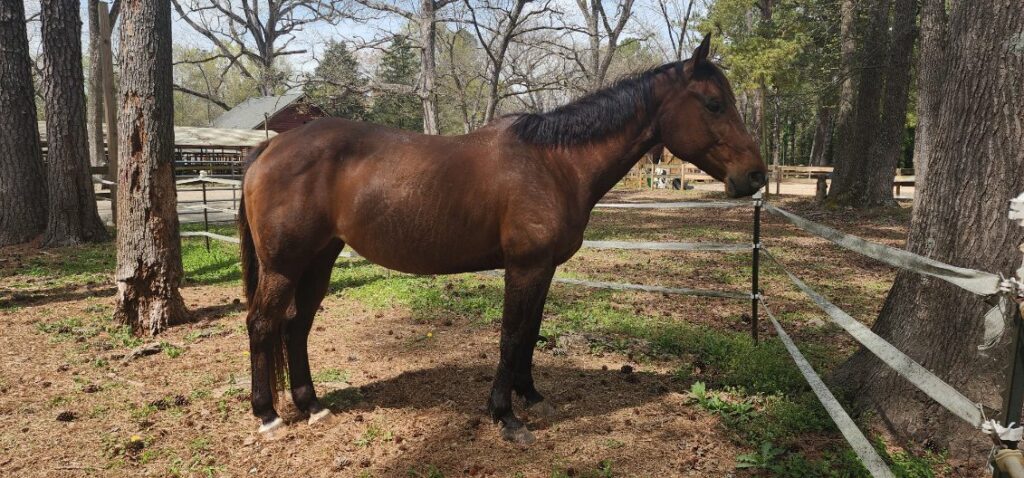 Sheba joined the Horses for Hope herd in 2025! She is an advanced Western horse with a sweet disposition, and she is used in groundwork lessons at this time.