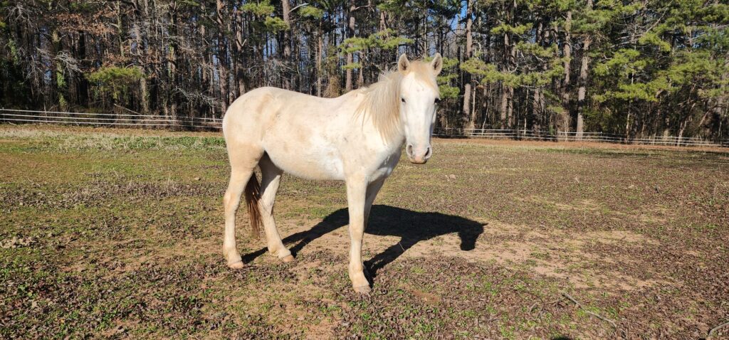 Awa joined us in April 2025. She is used for English and Western lessons, and she’s great for beginners through advanced riders. She loves rolling in the dirt!